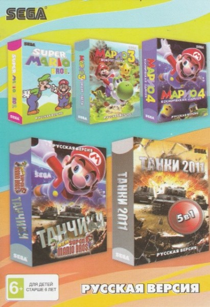 Картридж SEGA сборник 5 в 1 (A-501) Супер Марио / Марио 3+4 / Tanks 2011 / МАРИО + ТАНЧИКИ/