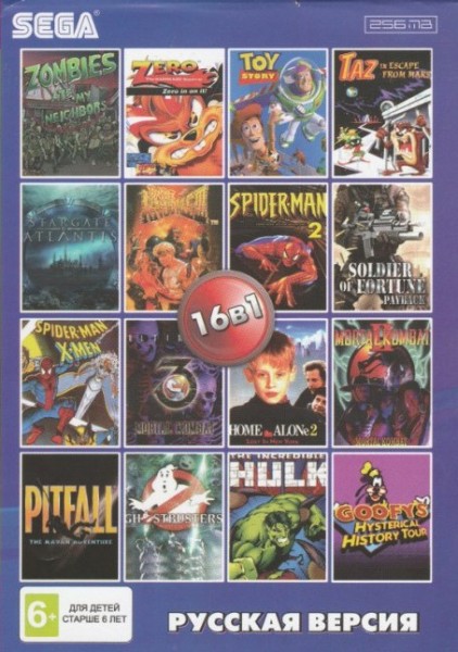 Картридж SEGA сборник 16в1 AA-160001 BARE KNUCKLE 3/M K 2,3/ SPIDER MEN 2,3/TOY STORY+...