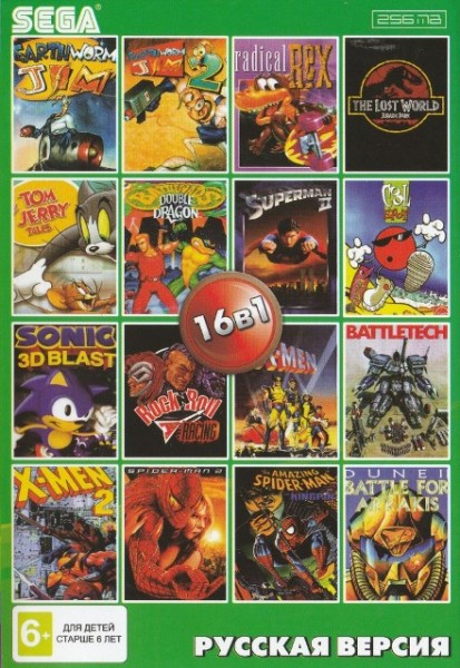 Картридж SEGA сборник 16 в 1 BS-16002 Earthworm Jim 1,2 / X-MEN 1,2 / Rock