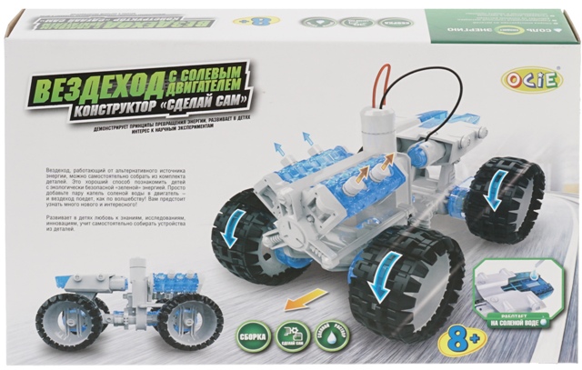 Вездеход с солевым двигателем демонстрирует принципы превращения энергии, развивает в детях интерес к научным экспериментам. Благодаря набору «Вездеход с солевым двигателем» ребенок сможет собрать свою модель вездехода и привести ее в движение без батареек, с помощью соленой воды!