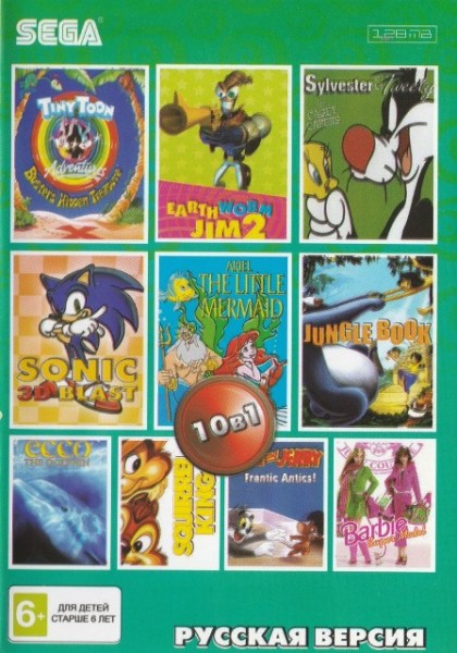 Картридж SEGA сборник 10 в 1 AC-10001 SONIC 3D /EARTWORM JIM 2/ JUNGLE BOOK+..