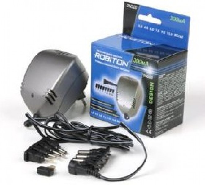 Блок питания 500мА, Нестабилизированный, Выбираемое напряжение: 3 / 4,5 / 6 / 7,5 / 9 / 12В , 8 входных насадок, Каплевидная форма корпуса. Подходит ко всем старым и новым телевизионным приставкам