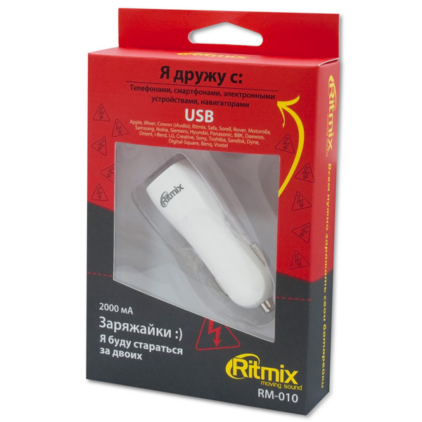Ritmix RM-010 автомобильное зарядное устройство с интерфейсом USB