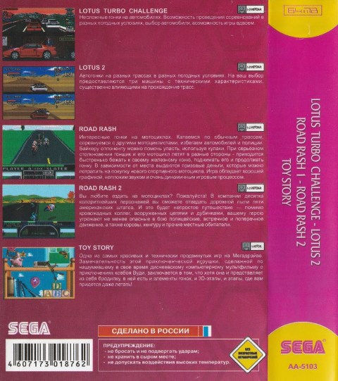 Картридж SEGA сборник 5 в 1 AA-5103, Toy Story и гонки