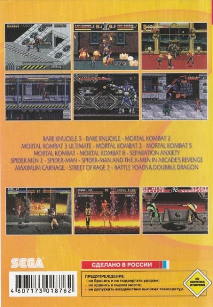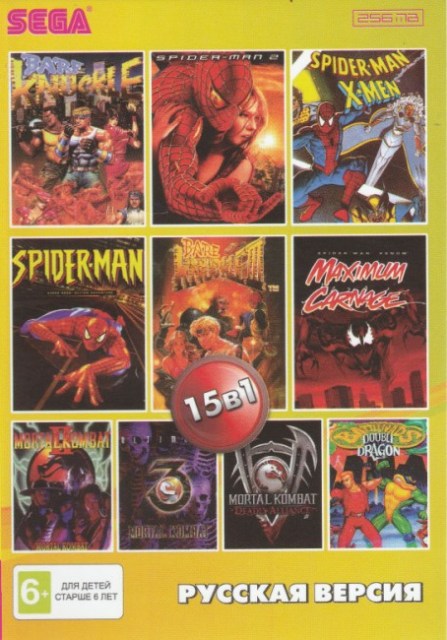 Картридж SEGA сборник 15 в 1 (AA-150001) MK 1,2,3,3 ULT,5,8/BARE RNUCKLE 1,3/SPIDER MEN 1,2,3